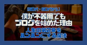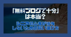 また「「才能」はいらない。不器用な僕たちがブログで輝くための、たった一つの「魔法の習慣」」が読み終わりましたら、次は、「「無料ブログで十分」は本当?|シニア初心者が後悔しないための賢い選び方」を確認してみましょう。