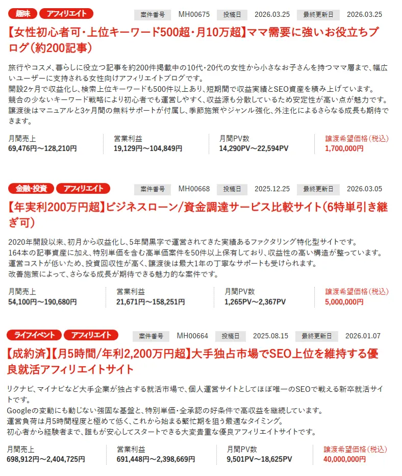 - サイト売買の現実: 実際にどんな案件が、いくらで取引されているのか。