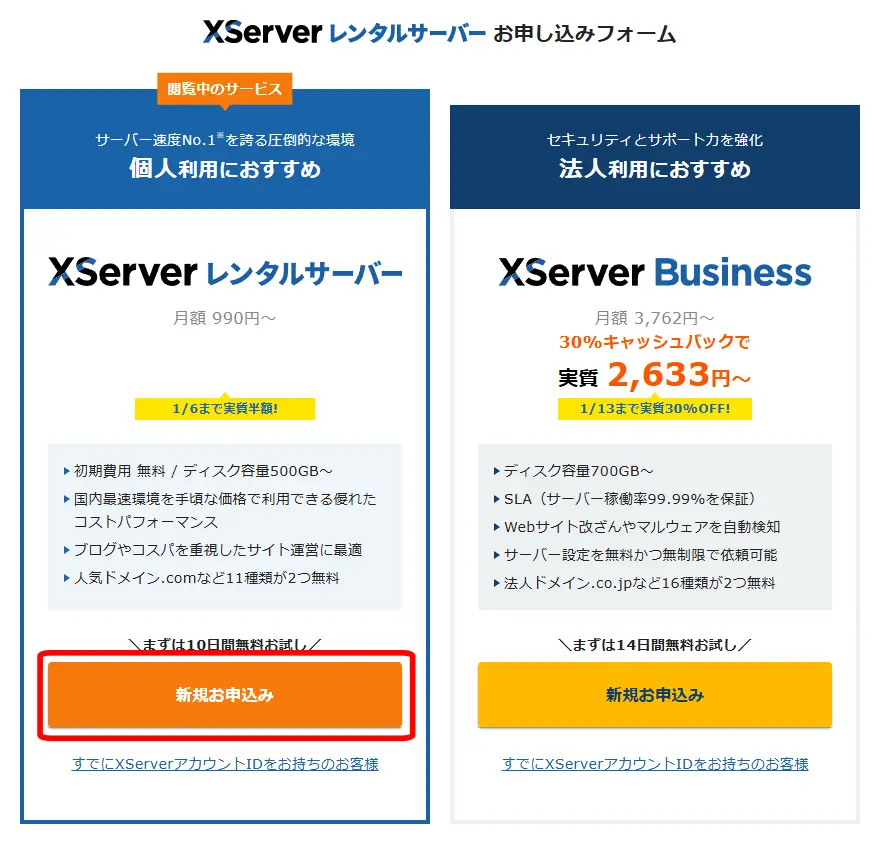 | エックスサーバー・シンレンタルサーバーで購入 | 一般購入 | |