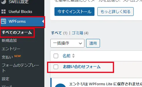 ダッシュボードから『WPForms』
