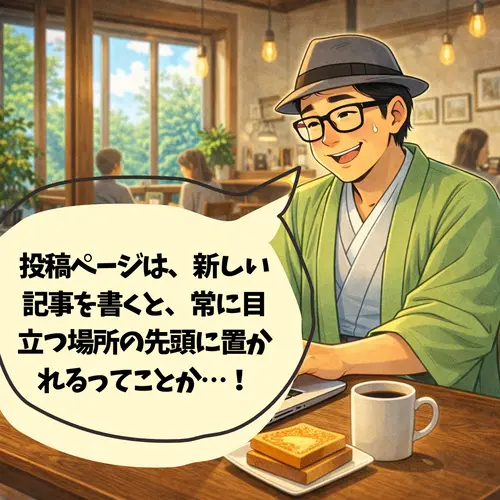 もし「お手紙(投稿)」で書いた内容が、後から「あ、これはずっと看板(固定ページ)にしておきたいな」と思ったら、後から中身を写して作り直すことだってできるんです。