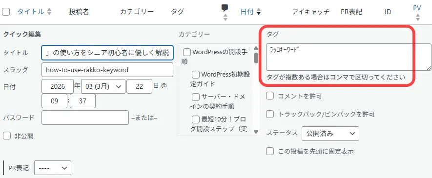 - コツ: カテゴリーと同様に、必ず「半角英数字」で入力しましょう。