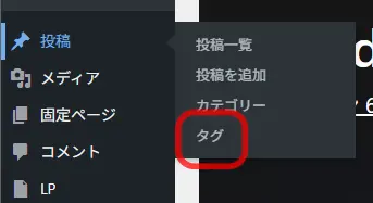 「投稿」→「タグ」をクリックします。ここが、あなたのお城にある「ラベル」をすべて管理する場所です。